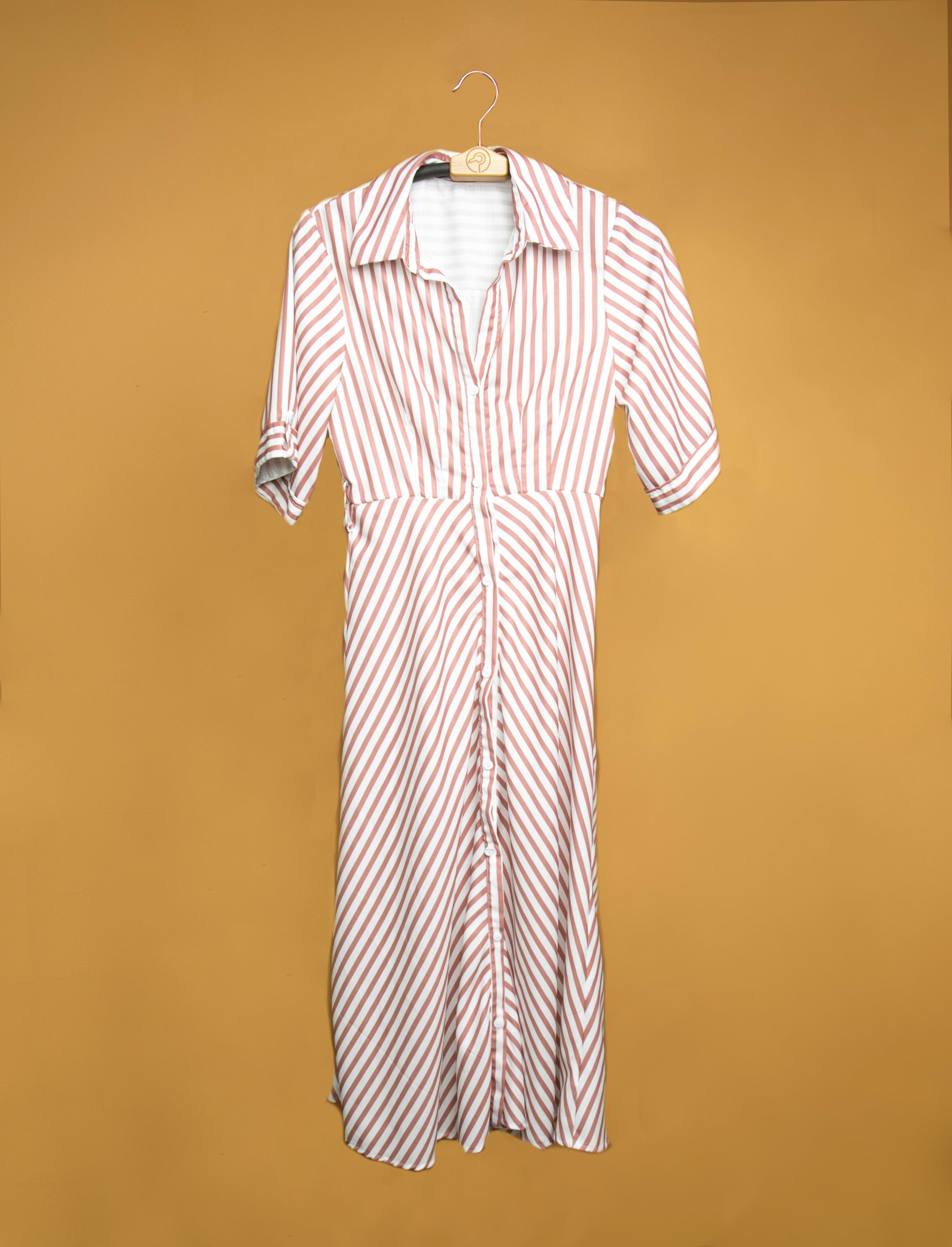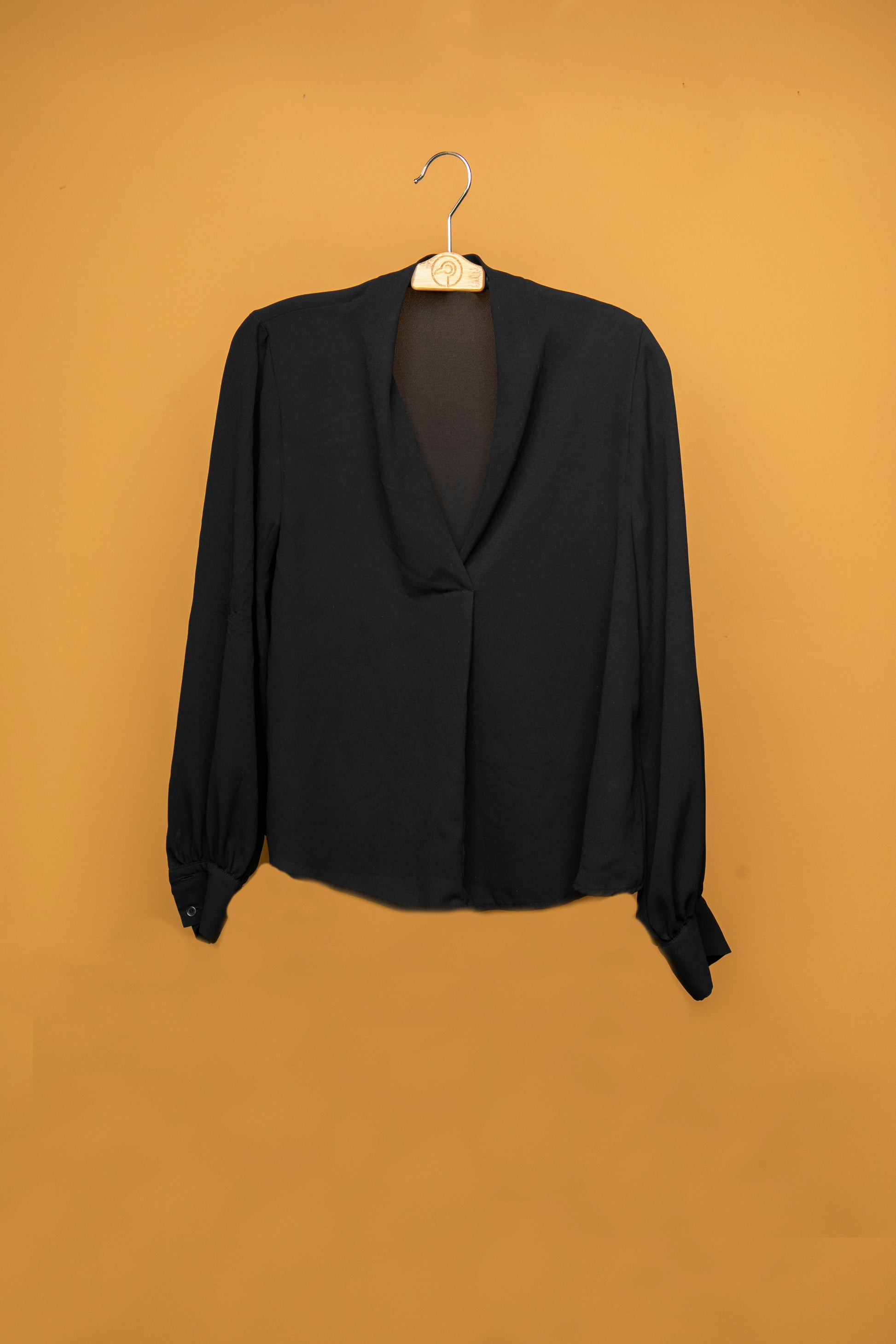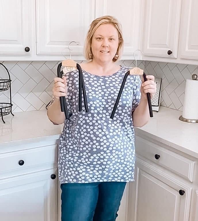 Slide your garment onto the hanger, ensuring shoulders and neckline are fully supported.
