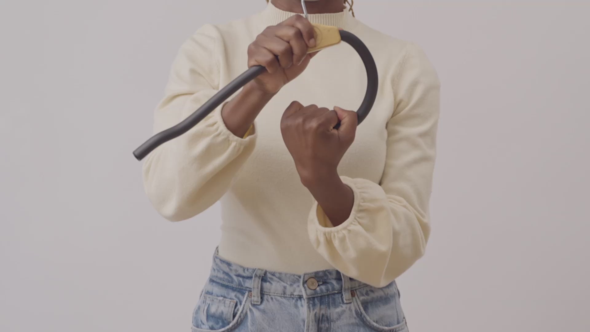 Regular and felt hangers force your clothing through a fixed shape — which is what stretches necklines over time. Hangio bends open, so your clothes slide on without tugging. It protects the structure of your clothing instead of working against it.